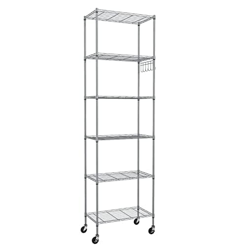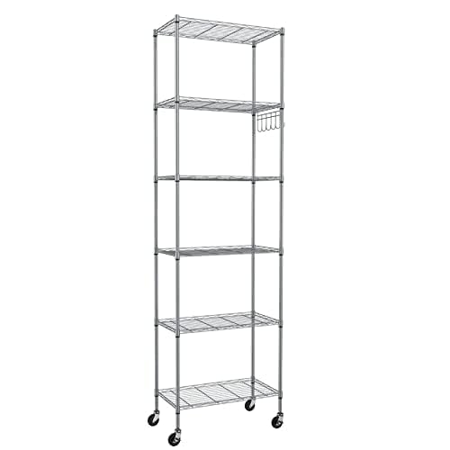 Himimi 6-Tier Wire Shelving Unit with Wheels - Adjustable Metal Storage Rack for Garage, Kitchen, Office, Pantry - Easy Assembly, Rolling Steel Shelves with Stainless Side Hooks, Silver Grey Himimi 6-Tier Wire Shelving Unit with Wheels - Adjustable Metal Storage Rack for Garage, Kitchen, Office, Pantry - Easy Assembly, Rolling Steel Shelves with Stainless Side Hooks, Silver Grey